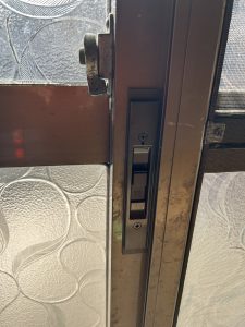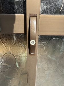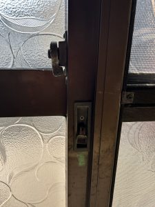 室内側はネジみたいなを差し込んでネジネジして鍵をかけるタイプ。